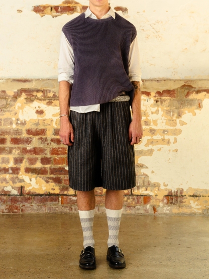 The Off-Duty Pinstripe Short is our take on formalwear.The short combines traditional tailoring with a modern sensibility. Choose your true size; if between sizes, order up.